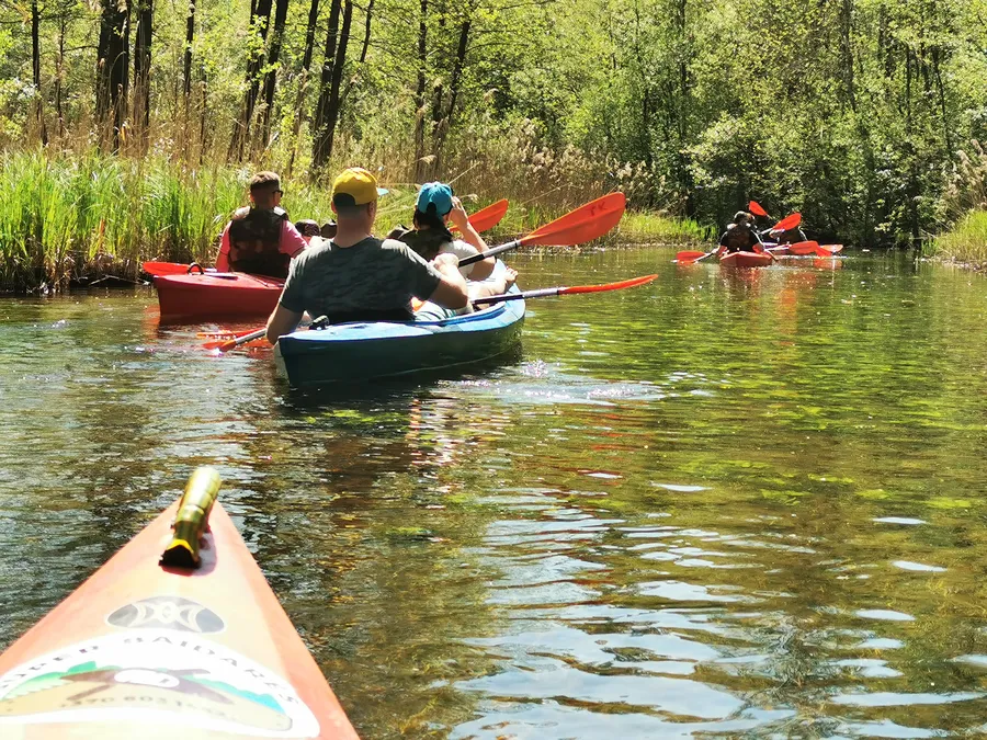 Nuo malūno plauksite Srovės upe, kol išsišakos upeliai – jums reikės sukti į kairę. Toliau laukia viena įdomiausių kelionės dalių – Ginučių kaimas. Pamatysite gražiai sutvarkytas sodybas, lieptus, praplauksite po dviem tiltais. Už Ginučių kaimo plaukiant upeliu pasieksite Asėko ežerą. Laikykitės dešinės ežero pusės, kol išplauksite į Asėkos upelį. Čia pasijusite kaip džiunglėse, o jei stabtelėsite akimirkai, nors srovė čia ir taip bus labai rami, išgirsite daugybę nuostabių paukščių garsų.