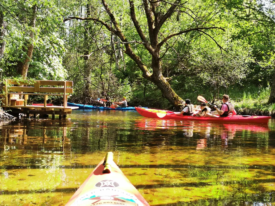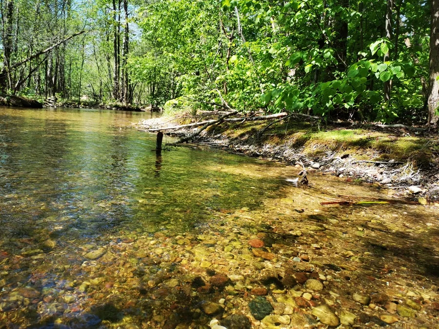 Vingiuota Būka iki pat Baluošo ežero teka išskirtinai tik miško vietovėmis.